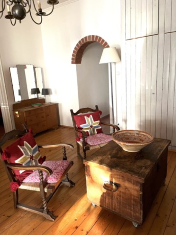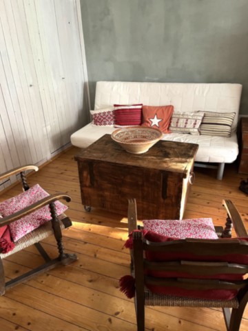 A nagy hálószobában egy duplaágy és egy külön ágy található. Ebből a szobából egy kádas fürdőszoba WC-vel nyílik. A második hálószobában egy duplaágy és egy innen nyíló fürdőszoba zuhanyzóval és WC-vel.. A nappaliban egy szétnyitható nagyobb méretü kanapé nyújt 2 további személynek alvási lehetöséget. Egy mini-szoba egészít ki az alvó lehetőségeket egy emeletes ággyal és innen nyíló WC-vel. A régi télikertben található az étkező. 8 személlyel kényelmesen lehet itt helyet foglalni. A nyitott konyha gáztűzhellyel, mosogatógéppel, mikrohullámú sütővel, kenyérpiritóval, vízforralóval és kávéfőzővel van felszerelve.
